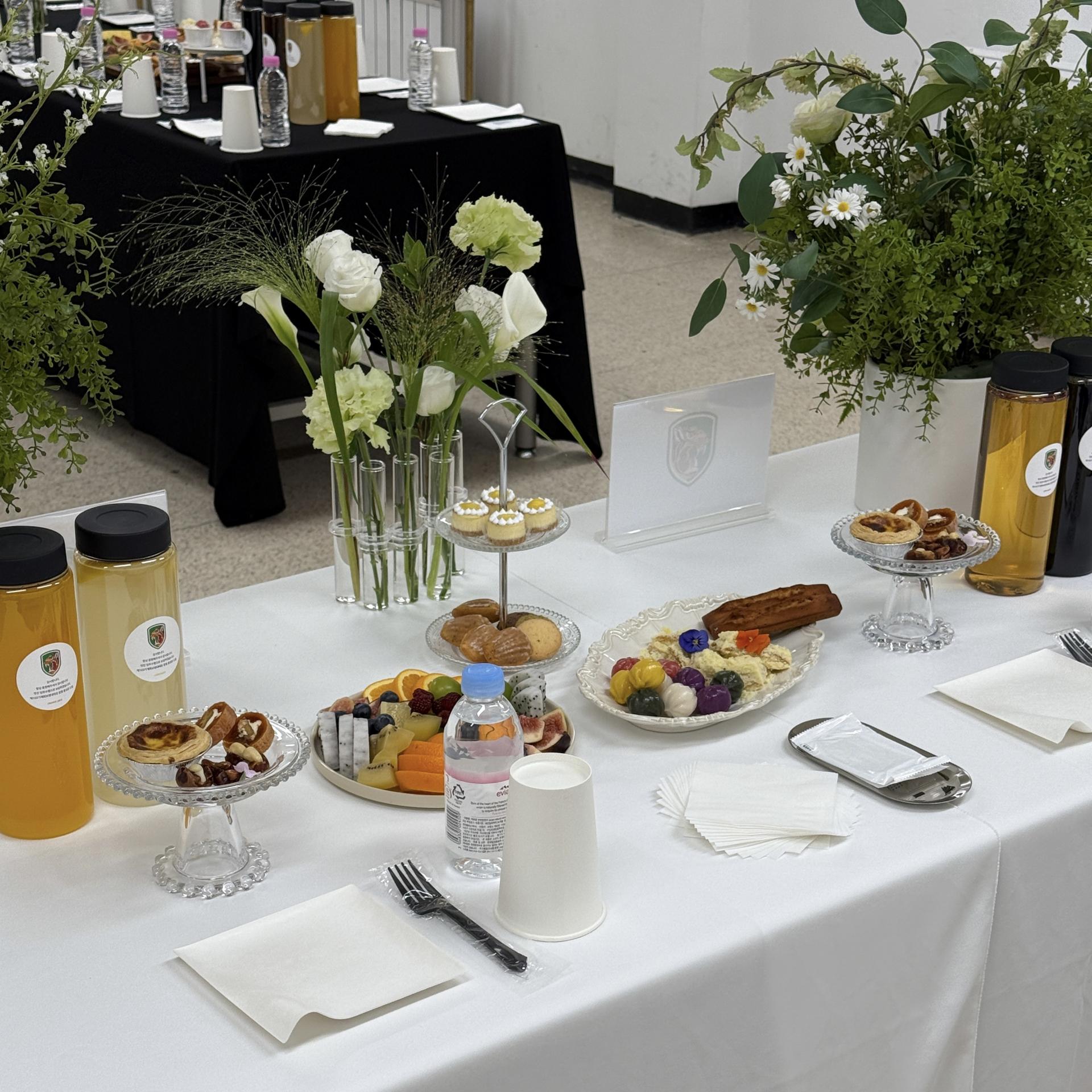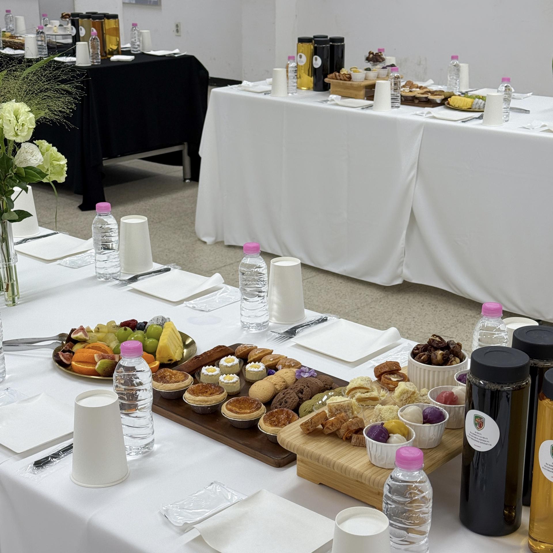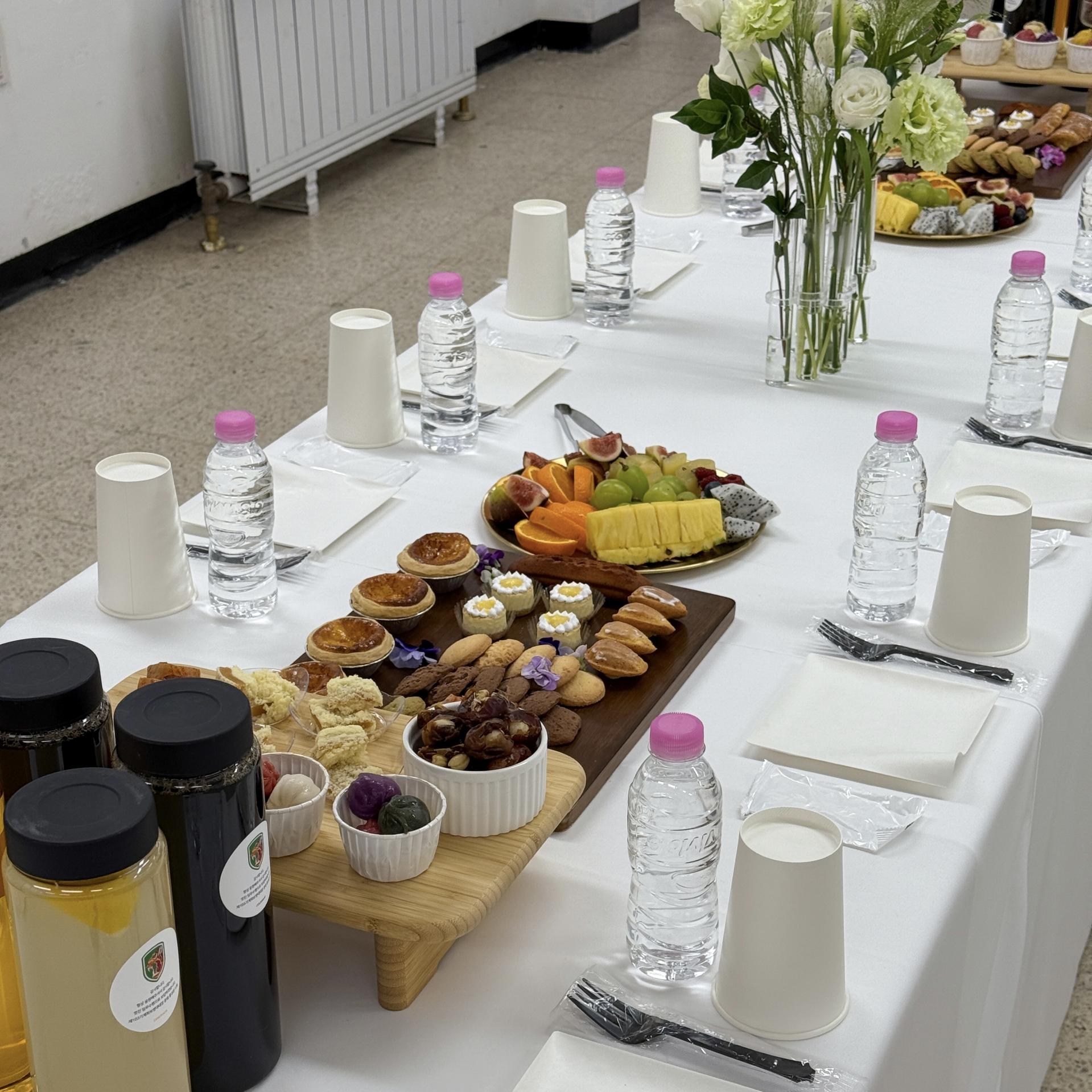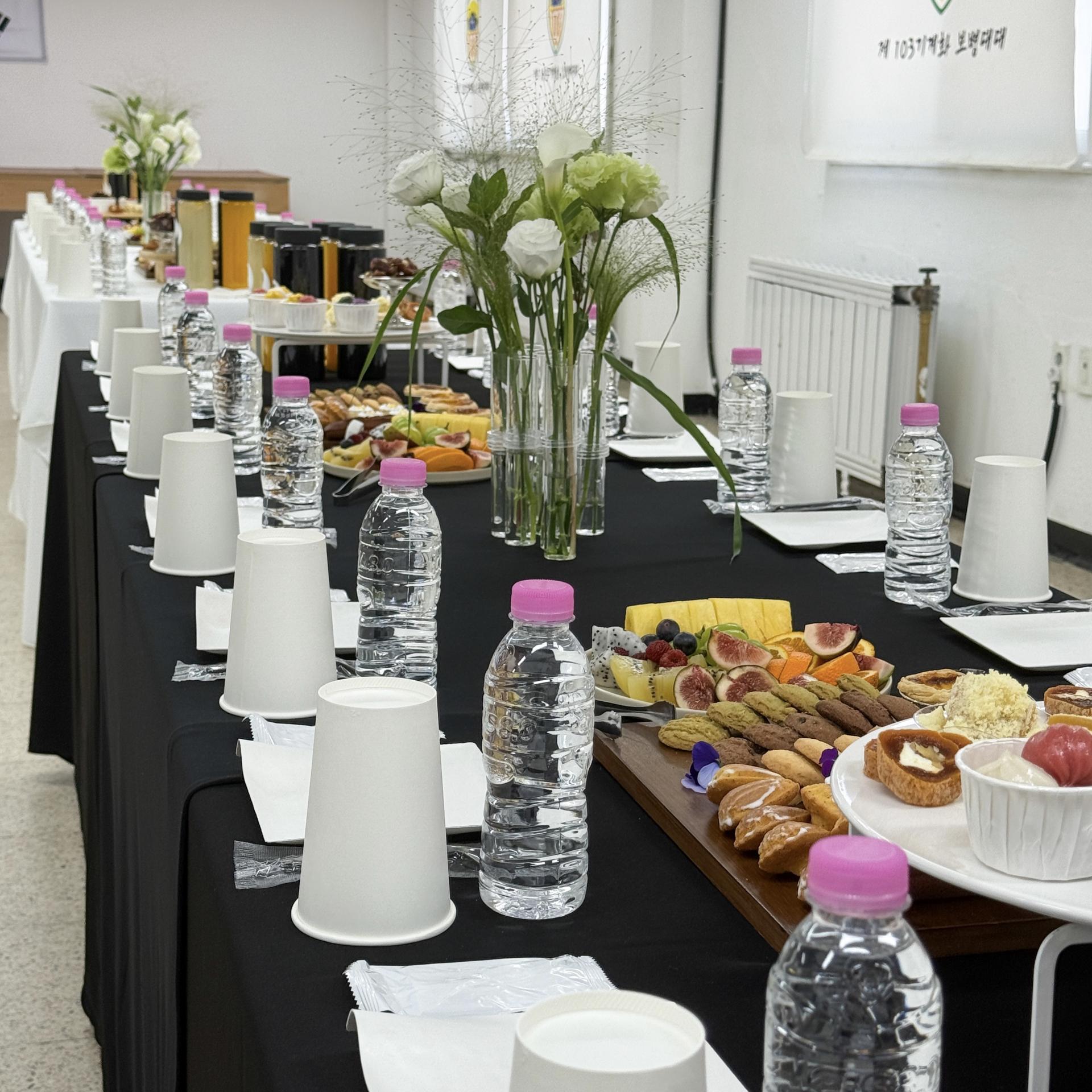다인용 테이블 다과,음료 세팅