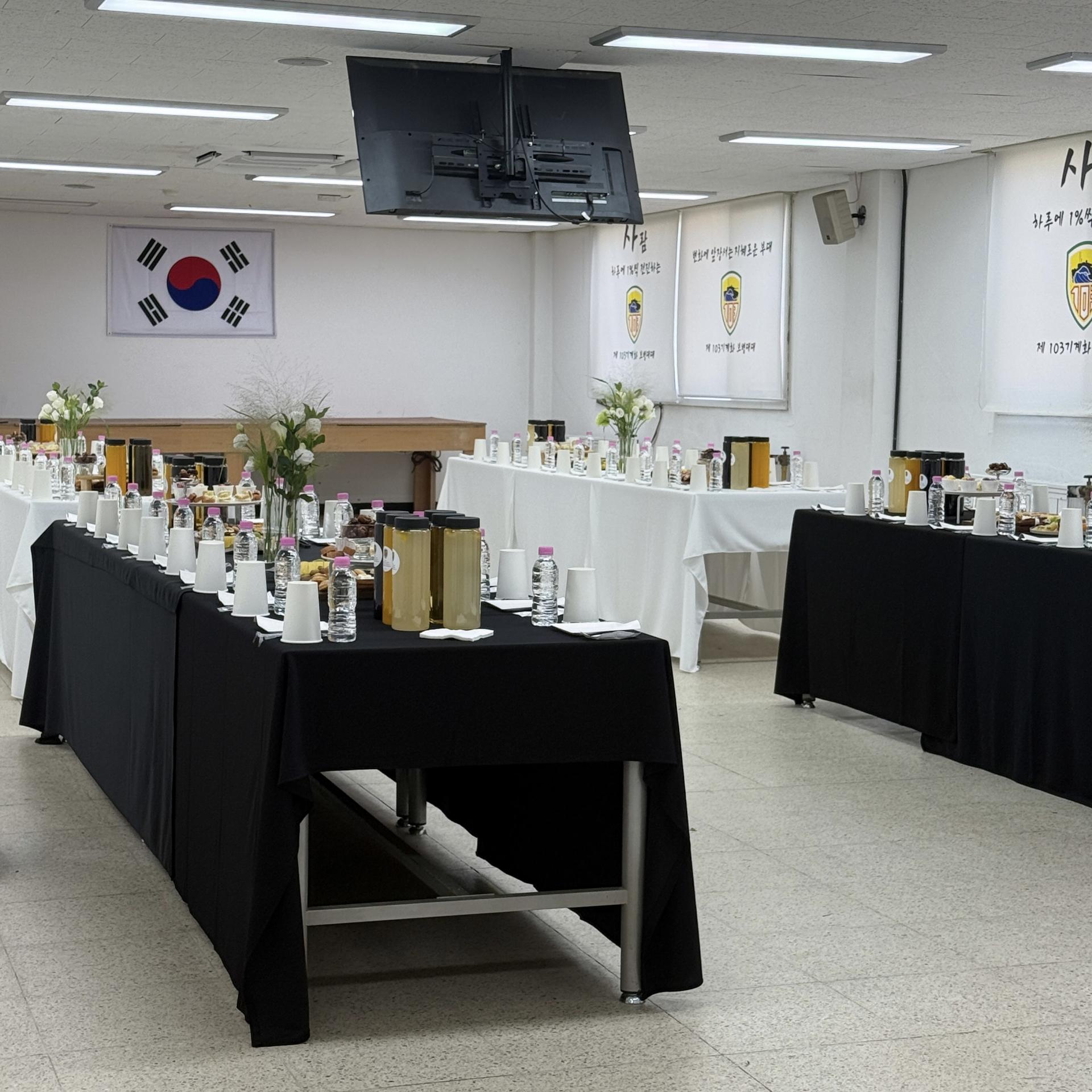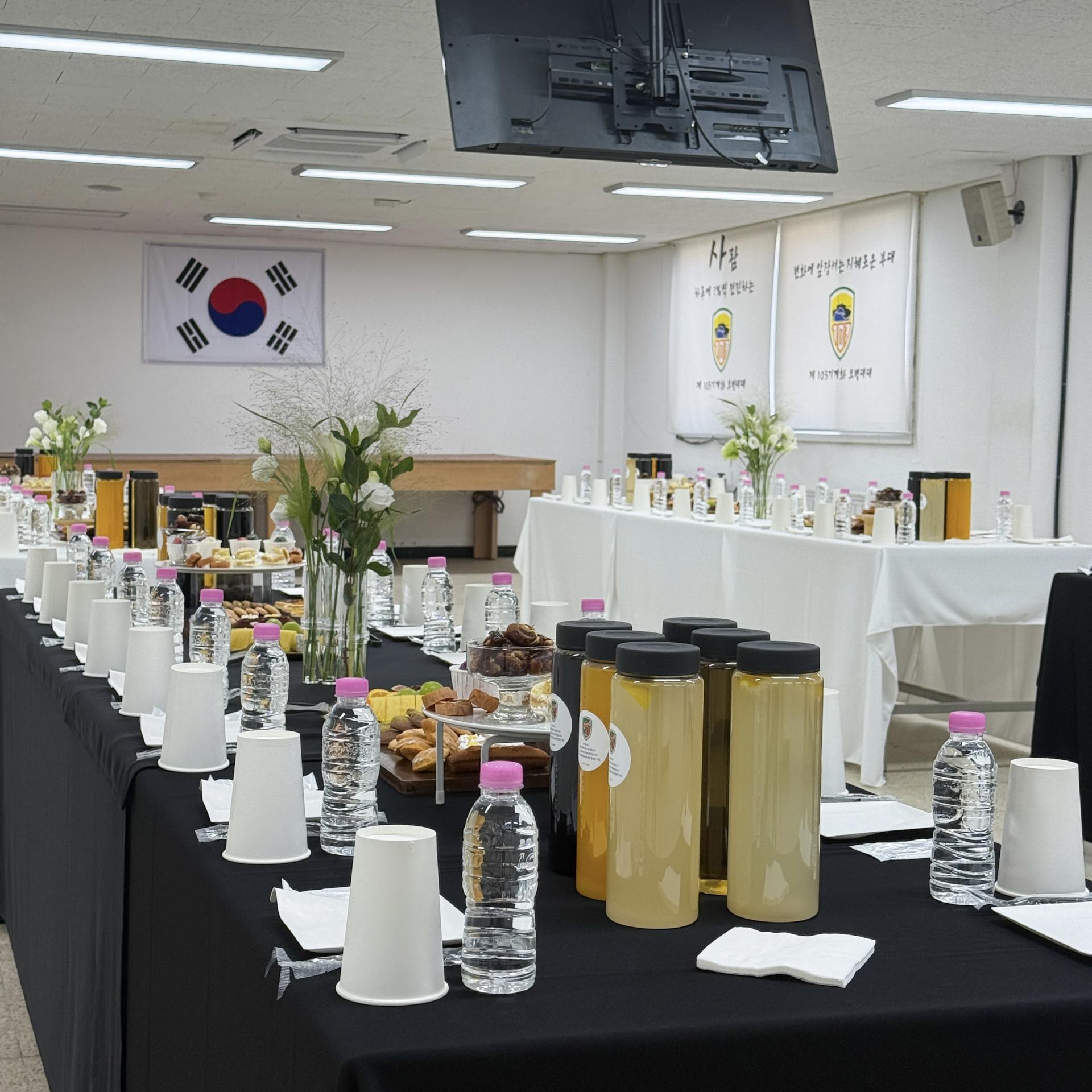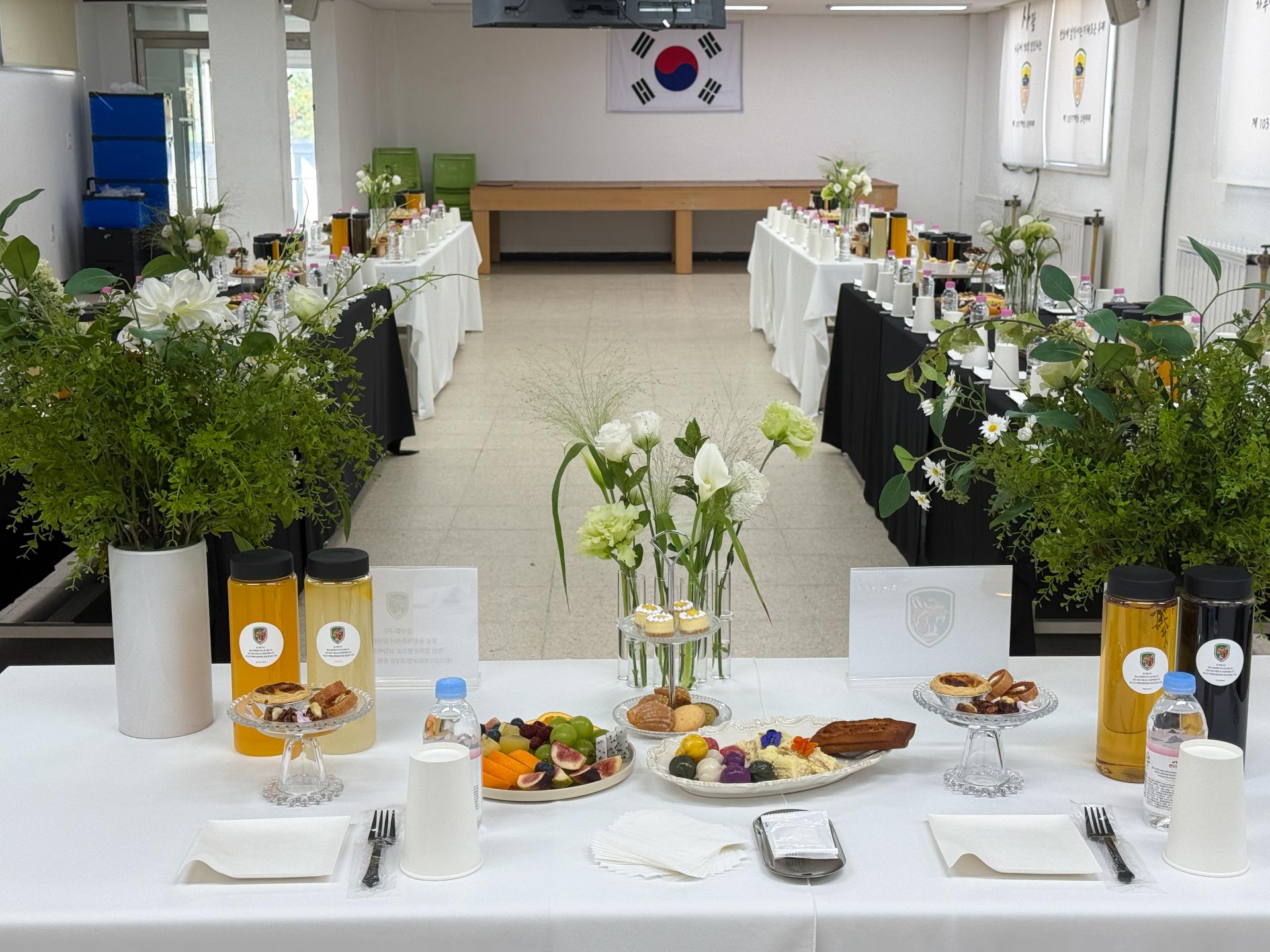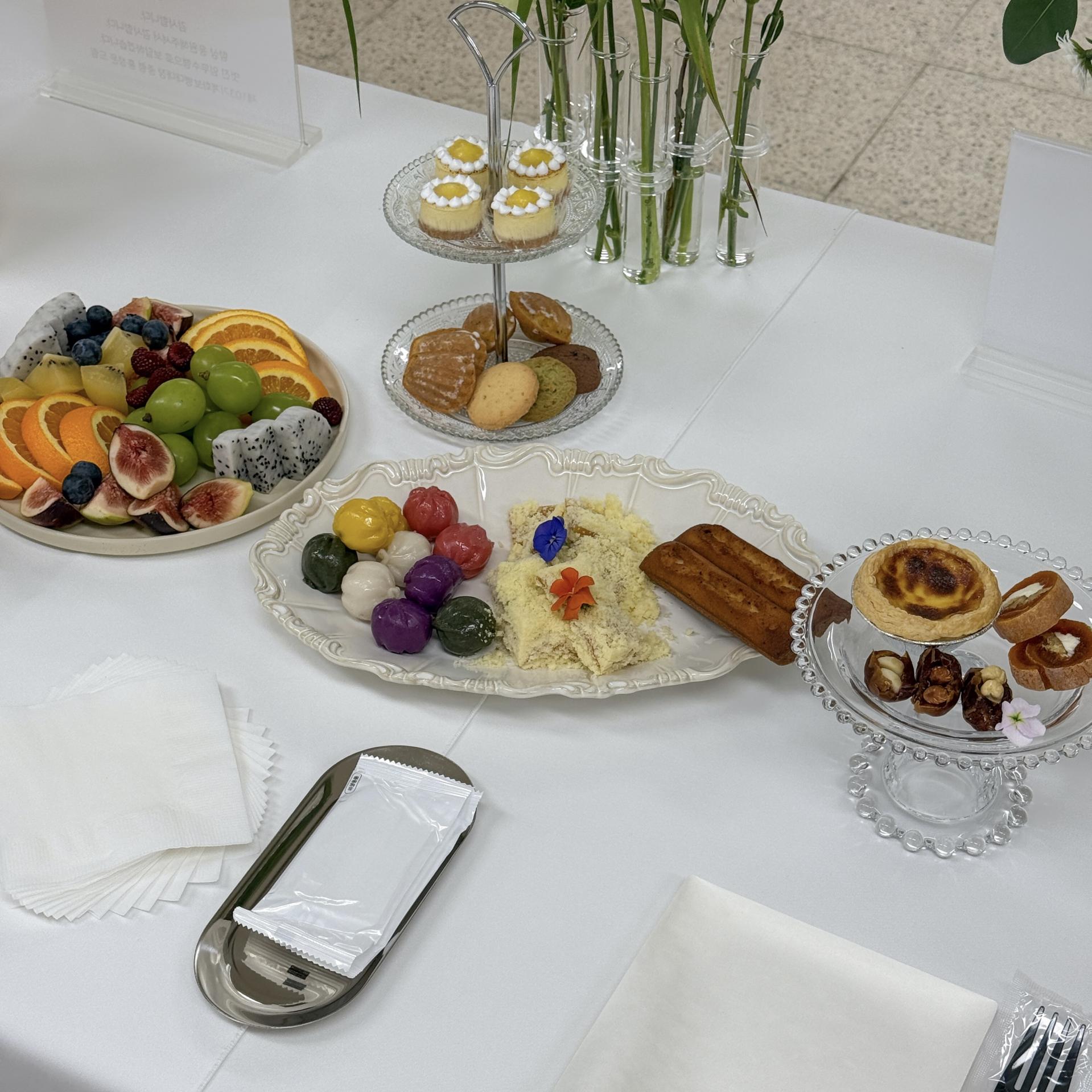 다인용 테이블 다과,음료 세팅